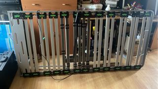 Base de cama articulada, ideal para un descanso personalizado. - Estructura principal de metal. - Láminas de madera. - Soportes de plástico en color verde.