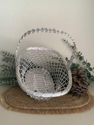 Cesta de metal con asa trenzada