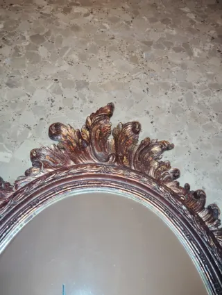 Precioso espejo con un marco ornamentado y detalles dorados. - Diseño ovalado. - Marco con acabados en relieve. - Estilo clásico y elegante.mide 1.04cmx0.56. A PESAR DE SU ANTIGUA EDAD ESTÁ MUY BIEN CUIDADO. LO VENDO ÉN 90 EUROS POR FAVOR ESCRIBAN SOLAMENTE PERSONAS INTERESADAS SI NO ESTÁ REALMENTE INTERESADO LE PIDO POR FAVOR QUE NO ESCRIBA, POR FAVOR LEAN BIEN SOLO INTERESADOS GRACIAS