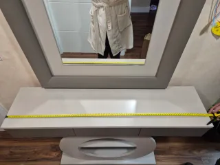 Elegante mueble de recibidor con un diseño moderno. - Acabado en dos tonos: beige y gris. - Material madera Cuenta con una balda y 3 cajones. Esta en perfecto estado salvo algunas picaduras en el esmalte en la zona de arriba. Recogida en domicilio, no se hacen envíos.