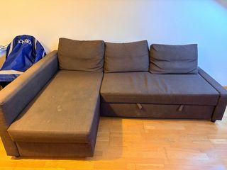 Sofá cama de tela, modelo Bårslöv de Ikea. Se despliega fácilmente para convertirse en una cama. - Estructura de tela resistente. - Diseño moderno y funcional. Tiene manchas de una vez que cayó agua y no se limpió bien, nosotros lo usamos con funda. Solamente venta para recoger en mano aquí. Se vende montado.