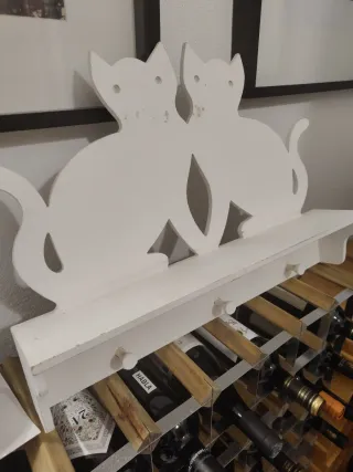 Original repisa decorativa con forma de dos gatos entrelazados y tres perchas en la parte inferior. Ideal para colgar llaves, pañuelos o pequeños accesorios. - Diseño único de gatos. - Acabado en blanco.