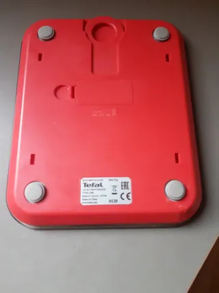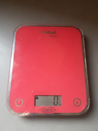 Báscula de cocina digital Tefal en color rojo. - Diseño moderno y compacto. - Superficie fácil de limpiar.