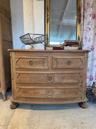 Cómoda francesa de finales del siglo XVIII. Romántica y noble, guarda en su madera clara la elegancia del tiempo y el alma de antiguos hogares franceses. Se hacen envíos a nivel nacional