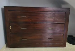 Vendo mueble antiguo / cómoda de madera maciza, de excelente calidad, nada que ver con los muebles actuales de conglomerado o DM. ✔ Madera maciza auténtica (mueble pesado y muy sólido) ✔ Frentes de cajón tallados a mano ✔ Tiradores originales ✔ Construcción tradicional, muy duradera ✔ Ideal para salón, dormitorio o proyecto de restauración El mueble está en buen estado general para su edad. Los cajones son completos y funcionales. Una pieza con carácter, hecha para durar toda la vida. Solo venta en mano por peso y tamaño.