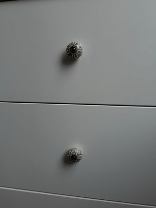 Cómoda de madera blanca con tiradores metálicos. Hay uno que está suelto (ver foto). Recoger hasta el 23 de marzo. Se vende por mudanza