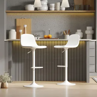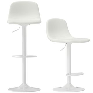 - Conjunto de dos taburetes de bar que añaden estilo a tu cocina o barra - Tapizados en cuero sintético fácil de limpiar y acolchados con espuma suave - Altura del asiento regulable de 58 a 78 cm con elevación a gas - Asiento giratorio 360° para mayor comodidad - Reposapiés integrado para mayor confort - Estructura de acero con base redonda y revestimiento en polvo para mayor estabilidad - Anillo de goma en la base para proteger el suelo de arañazos y reducir el ruido - Montaje rápido y sencillo en apenas 15 minutos Medidas totales: 40,5x44x84-104 cm (LxANxAL) Carga máxima: 120 kg (cada uno) 83A-264V00WT