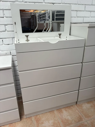 Cómoda blanca con espejo, 5 cajones