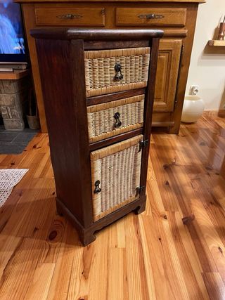 Cómoda o mueble recibidor con tres cajones y dos puertas.
