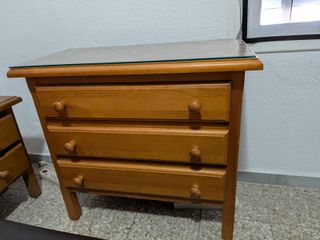 Preciosa mesita mesilla de noche de madera de pino. Tiene tres cajones. CAJONERA APARADOR COMODA CONSOLA MUEBLE LIBRERIA ARMARIO MESA ANTIGUEDAD ESPEJO MADERA MARMOL - Medidas: Ancho 55 cm, Fondo 43 cm, Altura 56 cm MUCHOS MÁS OBJETOS EN MI PERFIL