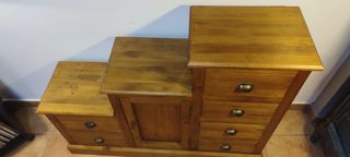 mueble en escalera madera de pino con 6 cajones pequeño armario central en perfecto estado medidas: Ancho 1'15 cm fondo:32 cm alto: 88 cm alto medio: 70 cm alto bajo: 50 cm