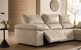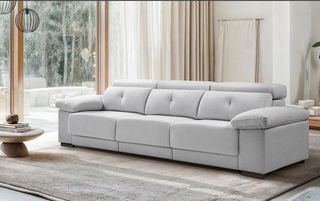 Sofá modelo Imperial de 265 cm de ancho y 90 cm de fondo, con armazón de pino gallego muy resistente. Lleva respaldos reclinables y asientos extensibles, súper cómodo para tumbarse a gusto. Está disponible en dos colores: gris y beige, ambos muy combinables y modernos. Perfecto para salón amplio y para quien busque comodidad de verdad sin renunciar a un buen diseño. Para más info, WhatsApp: 698 * 466 * 075 .