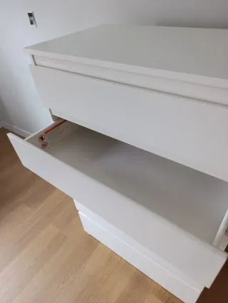 Cómoda Malm de Ikea con seis cajones en color blanco. Su diseño moderno y funcional se adapta a cualquier habitación. - Seis cajones amplios para almacenamiento. - Acabado liso y fácil de limpiar. - Comprada hace 2 años - No se hacen envíos