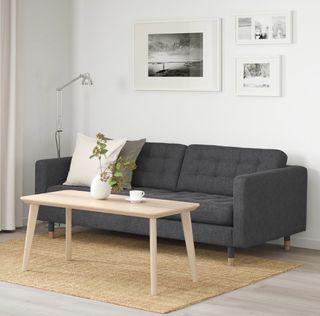 Sofá de tres plazas de Ikea, con un diseño moderno y confortable. - Funda extraíble para facilitar la limpieza. - Estructura robusta y duradera. - Cojines mullidos para mayor comodidad.