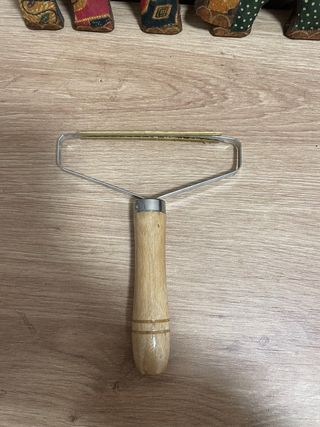 Quitapelusas manual con mango de madera y muelle metálico. Ideal para eliminar pelusas, pelos y bolitas de ropa, abrigos, mantas o sofás. Está sin estrenar, en perfecto estado. Muy cómodo de usar y más eficaz que muchos quitapelusas eléctricos. Entrega en mano o envío.