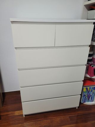 Cómoda Malm de Ikea con seis cajones. Su diseño moderno y funcional se adapta a cualquier habitación. - Seis cajones amplios para almacenamiento. - Acabado liso y fácil de limpiar.
