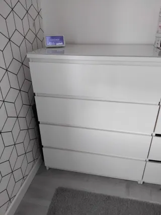 Cómoda de 4 cajones de la serie Malm de Ikea. Incluye cristal blanco (el que habia antes que no tiene agujeros). Todo nuevo y montada.