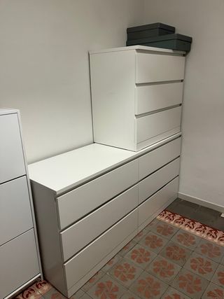 Comoda de 6 cajones en perfecto estado y de regalo 2 cajoneras pequeñas a juego mismo color tb en en perfecto estado Cómoda alta MALM de IKEA con seis cajones. Su diseño combina acabados en madera y blanco. Comoda y joyero con espejo - Cajones amplios y funcionales. - Estructura robusta y estable. De REGALO 2 PEQUEÑAS