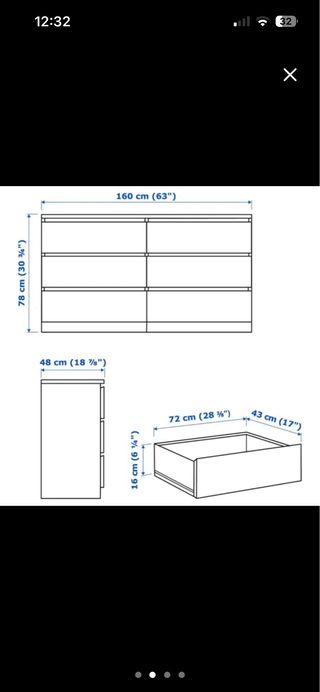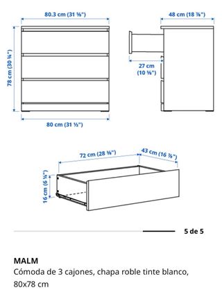 Cómoda de ikea malm 6 cajones 80cm ancho 48cm fondo 123cm alto