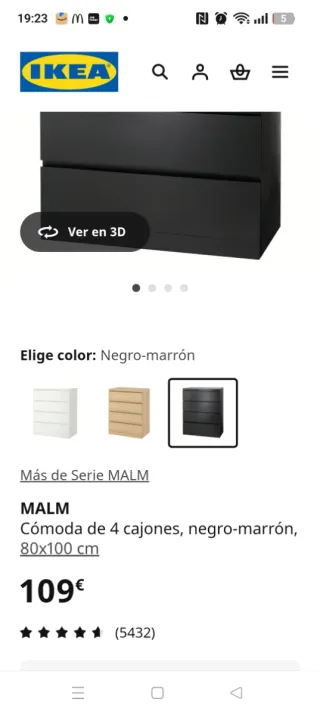 Cómoda Malm Ikea Negra-Marrón.