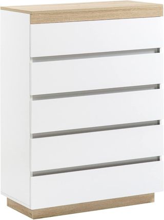 Cómoda de 5 Cajones de Madera, Cómoda para Dormitorio con Dispositivo Antivuelco, 80X40X109 Cm, Blanco y Roble