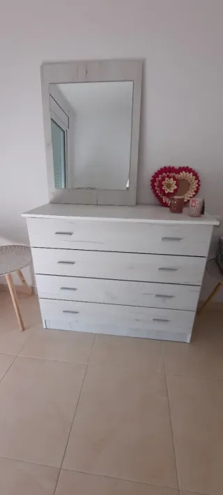 SOLO HOY 25€ TODO EL CONJUNTO Vendo dormitorio completo: ✔️ Cómoda grande ✔️ 2 mesillas ✔️ Espejo Todo en buen estado y listo para usar. Muebles fuertes, de madera (no son de los baratos). 🚨 ME URGE SACARLO YA 🚨 NO NEGOCIABLE 🚨 NO RESERVO 👉 El primero que venga se lo lleva 👉 Recogida rápida Si lo ves, no lo dejes pasar porque por este precio vuela. Recogida en Hortaleza, metro Manoteras.