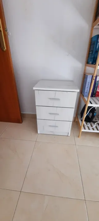 Cómoda blanca de 3 cajones en buen estado Vendo cómoda de color blanco con 3 cajones amplios, ideal para dormitorio o cualquier estancia. Tiene un diseño sencillo y moderno que combina con todo tipo de decoración. ✔️ Cajones espaciosos y funcionales ✔️ Estructura robusta ✔️ Tiradores en color oscuro ✔️ Fácil de limpiar 🔎 Estado: Buen estado general, con alguna pequeña marca superficial en la parte superior (ver foto), que no afecta a su uso. 📏 Perfecta para guardar ropa, accesorios o lo que necesites. 💰 Precio negociable 📍 Recogida en persona