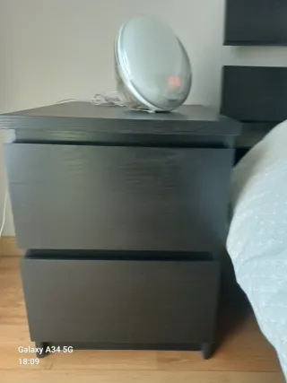 Muebles de dormitorio de la serie Malm de Ikea. El conjunto incluye una cama y un armario. - Cama de 90cm con cabecero negro y sommie Lonset (Ikea) de láminas. - Comoda negra de 3 cajones. - Mesita de noche de 2 cajones (Regalo colchón si se desea)