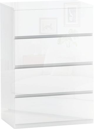 Cómoda Moderna 4 Cajones Antivuelco, Cómoda de Madera de Aglomerado, 55X33X80 Cm, Blanco Brillante