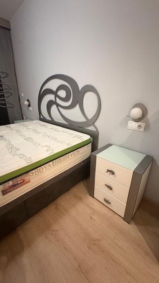 Muebles de dormitorio: cabecero, mesita y cómoda