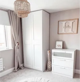 Cómoda infantil con un diseño moderno y funcional. - Combinación de colores blanco y beige. - Tiradores redondos y sencillos.