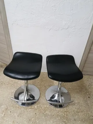 Conjunto de dos taburetes con un diseño moderno y elegante. Uno ya no se regula en altura . - Asiento cómodo. - Base redonda y estable. - Reposapiés integrado.