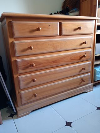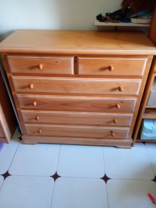 Mueble tipo cómoda de madera, ideal para organizar tu dormitorio. Cuenta con seis cajones para almacenamiento. muy amplio - Diseño clásico y funcional. - Acabado en tono madera natural. para este producto no hago envíos a domicilio. Solo recogida en mano tengo una mesita de noche a juego en mi perfil
