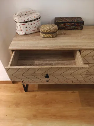 Cómoda color marrón, con cuatro cajones grandes. Está usada pero en muy buen estado, bien cuidada y totalmente funcional. Los cajones abren y cierran correctamente y ofrece buena capacidad de almacenaje. Diseño sencillo y práctico, fácil de combinar con distintos estilos de habitación. 🛏️ Información adicional: También dispongo de un cabecero con dos mesitas de noche a juego, que se pueden ver en mi perfil. El cabecero y las mesitas se pueden vender junto con la cómoda o por separado. 📍 Recogida en persona. Cualquier duda, ¡escríbeme sin compromiso. Dato importante: está en Gandia