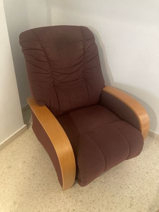 Es súper cómodo! Lo vendemos porque ya no nos hace falta. Está desgastada la parte de la cabeza. Suelo ponerlo con una tela o funda. Este sillón reclinable ofrece gran comodidad y un diseño elegante con detalles en madera. - Tapicería suave y confortable. - Estructura de madera robusta.