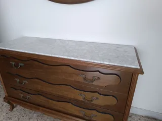 Cómoda de madera con tapa de mármol