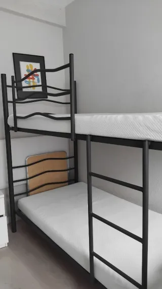 Se vende litera metálica con dos colchones. - Estructura de metal resistente. - Colchones de tela cómodos.