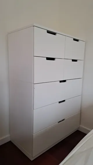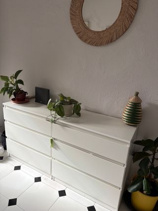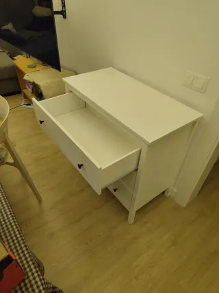 Vendo cómoda blanca de IKEA, totalmente nueva y sin uso. Precio original en IKEA 120 € sin montar. La vendo ya montada, lista para usar. Tiene 6 cajones amplios, diseño moderno y muy combinable, perfecta para dormitorio o vestidor. Está impecable, tal como se ve en la foto.