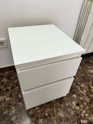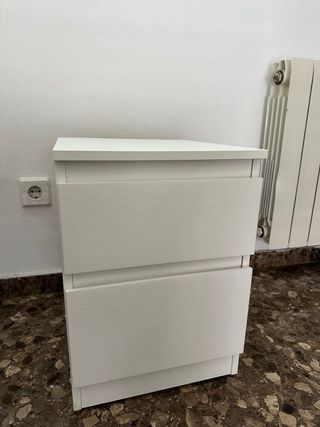 Cómoda de dos cajones en color blanco. Sus medidas son 35 cm de ancho por 49 cm de alto. - Diseño moderno y funcional. - Ideal para espacios pequeños. - Se uso un par de meses, como nuevo, no tiene ninguna imperfección.