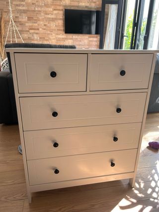 Cómoda 5 cajones madera blanca, modelo Hemnes Ikea