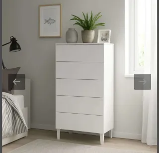 Cómoda koopang de Ikea en color blanco, con 6 cajones. Tiene solo 2 meses solo en hab de invitados pero nos queda muy grande. Es nueva te evitas montarla y esta sin recien montada. - Diseño de 6 cajones. - Acabado en tinte blanco.
