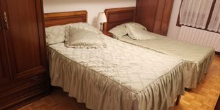 Se venden dos camas individuales de 1,05 metros, junto con somier, colchón , colcha , con una mesilla de noche y una cómoda a juego. El conjunto está fabricado en madera y las camas cuentan con un cabecero. - Dos camas de 1,05 metros. - Mesilla de noche. - Cómoda. - Cabeceros de madera.