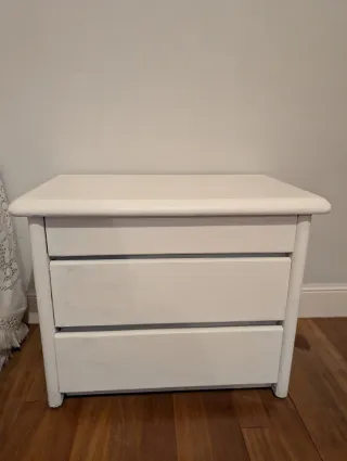 Conjunto de cómoda y mesita auxiliar. Originalmente madera como veis enos cajones, pero los hemos pintado de blanco Cada uno 15 euros Mesita 62*47*37 Mesa 105*67*47