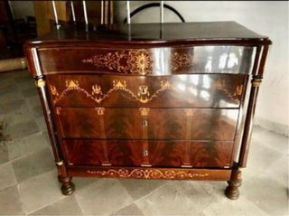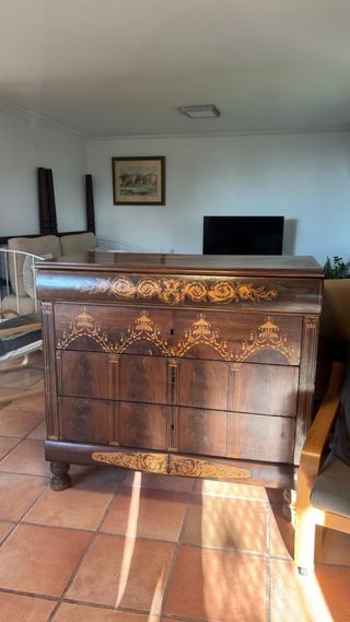 Cómoda antigua de madera con marquetería