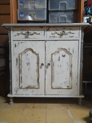 Cómoda vintage madera gris y blanco