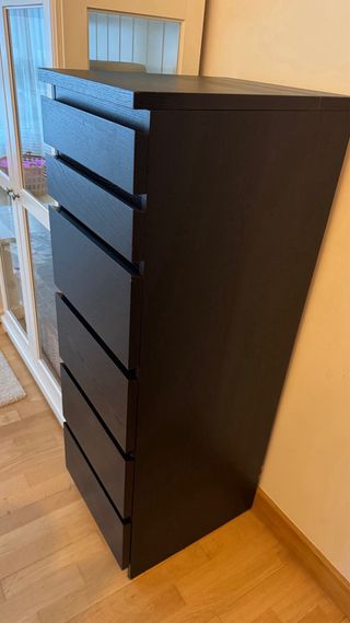 A recoger en Alonsotegi. Cómoda Malm de Ikea con seis cajones. Su diseño moderno y funcional se adapta a cualquier habitación. - Acabado en color marrón oscuro. - Fabricada en madera.