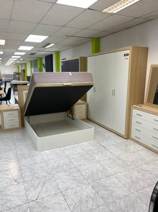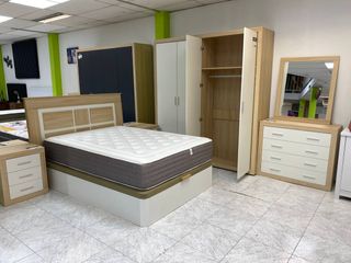 Conjunto de dormitorio completo en tonos marrones y blancos, ideal para amueblar tu habitación. -INCLUYE: Canape 150x190 + Colchon 16cm viscoelastico, Cabecero + 2 mesitas de noche, Armario 4 puertas + comoda, 2 espejos Linea directa 📲 24/7 sin compromiso! 📲 643*189*083 MUEBLES NUEVOS DE TODO TIPO PARA EL HOGAR 🏡 🚚💨 NUEVOS EN SU CAJA DE FABRICA 🏡⬆️ Se suben hasta el domicilio 💸El pago es en persona al recibir