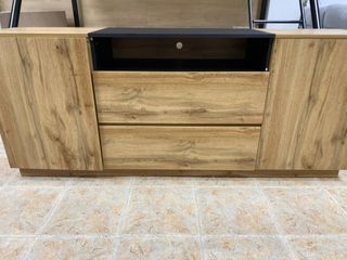 Mueble aparador con un diseño moderno y funcional. - Dos puertas laterales. - Dos cajones centrales. - Acabado en madera y detalles negros. Linea directa 📲 24/7 sin compromiso! 📲 643*189*083 MUEBLES NUEVOS DE TODO TIPO PARA EL HOGAR 🏡 🚚💨 NUEVOS EN SU CAJA DE FABRICA 🏡⬆️ Se suben hasta el domicilio 💸El pago es en persona al recibir