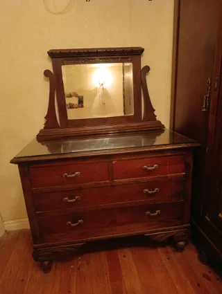 Cómoda de madera con espejo