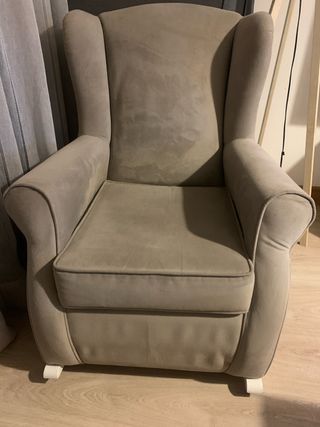 Cómoda mecedora tapizada en tela. - Diseño clásico con respaldo alto. - Brazos acolchados. - Base estable.